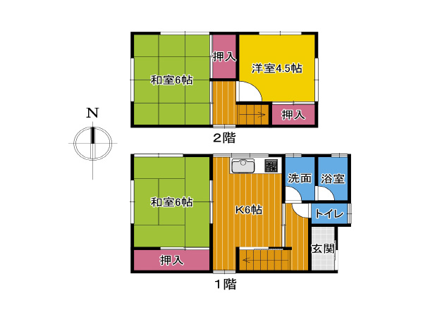 洋室4.5帖 和室6帖×2 DK6帖 |